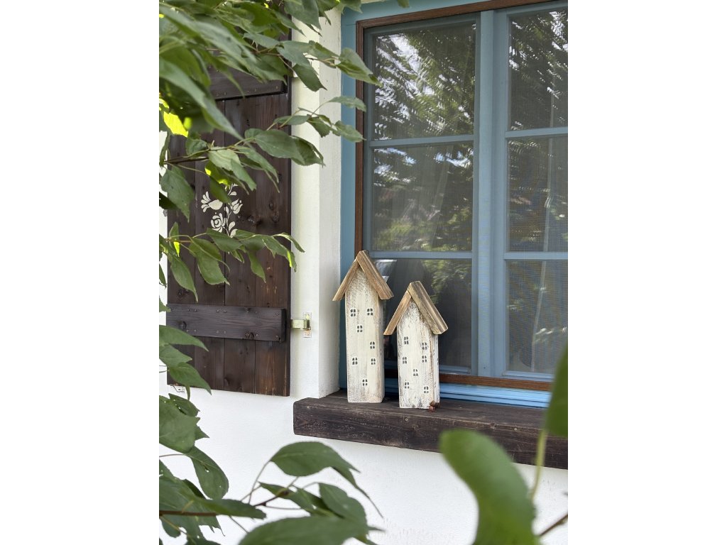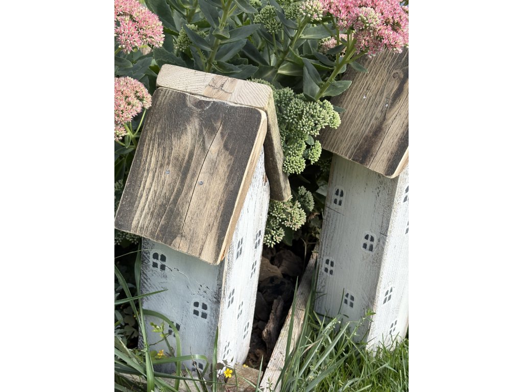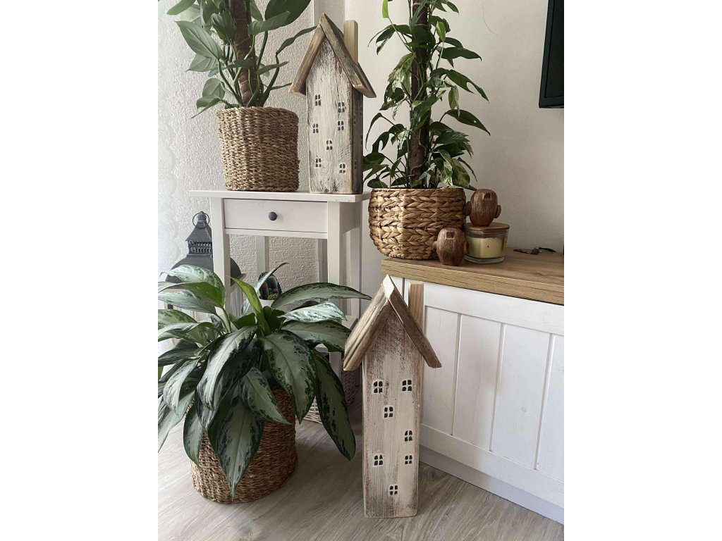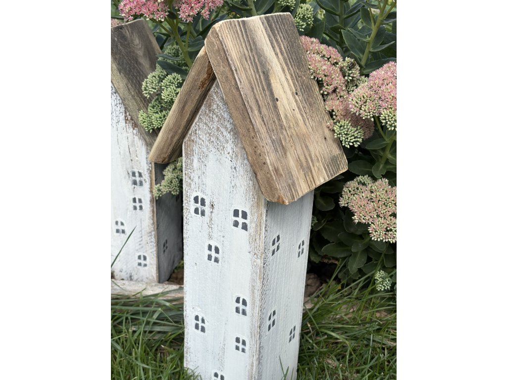 Drevené domčeky s vyškami 40 cm a 50 cm. Sú vyrobené z hranola 11x11 cm. Cena je za sadu dvoch kusov.