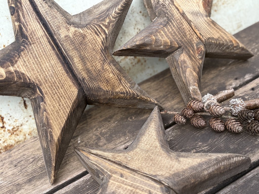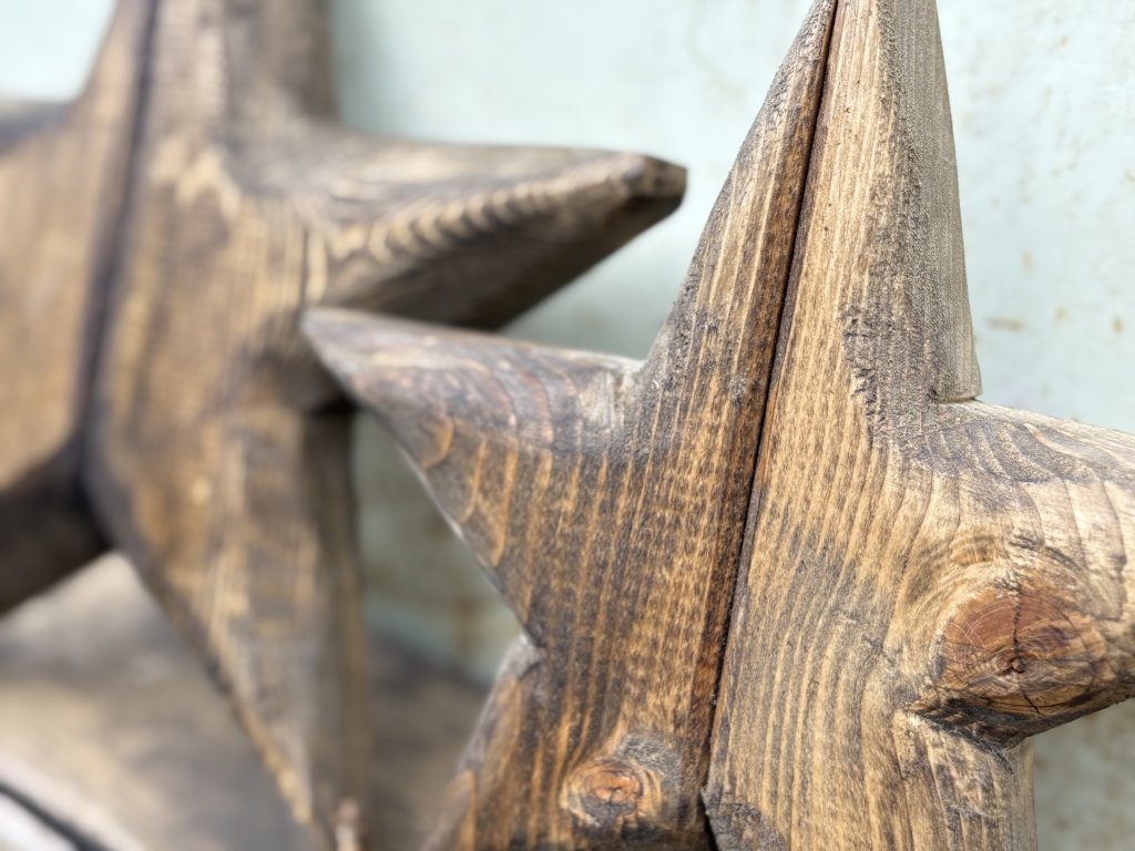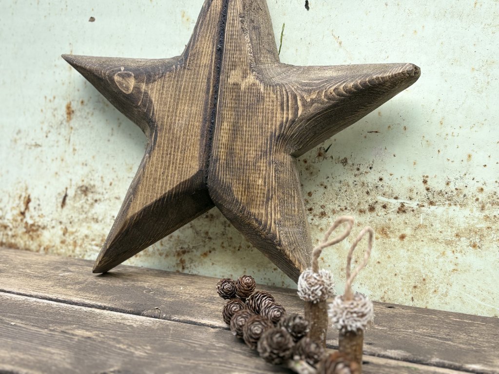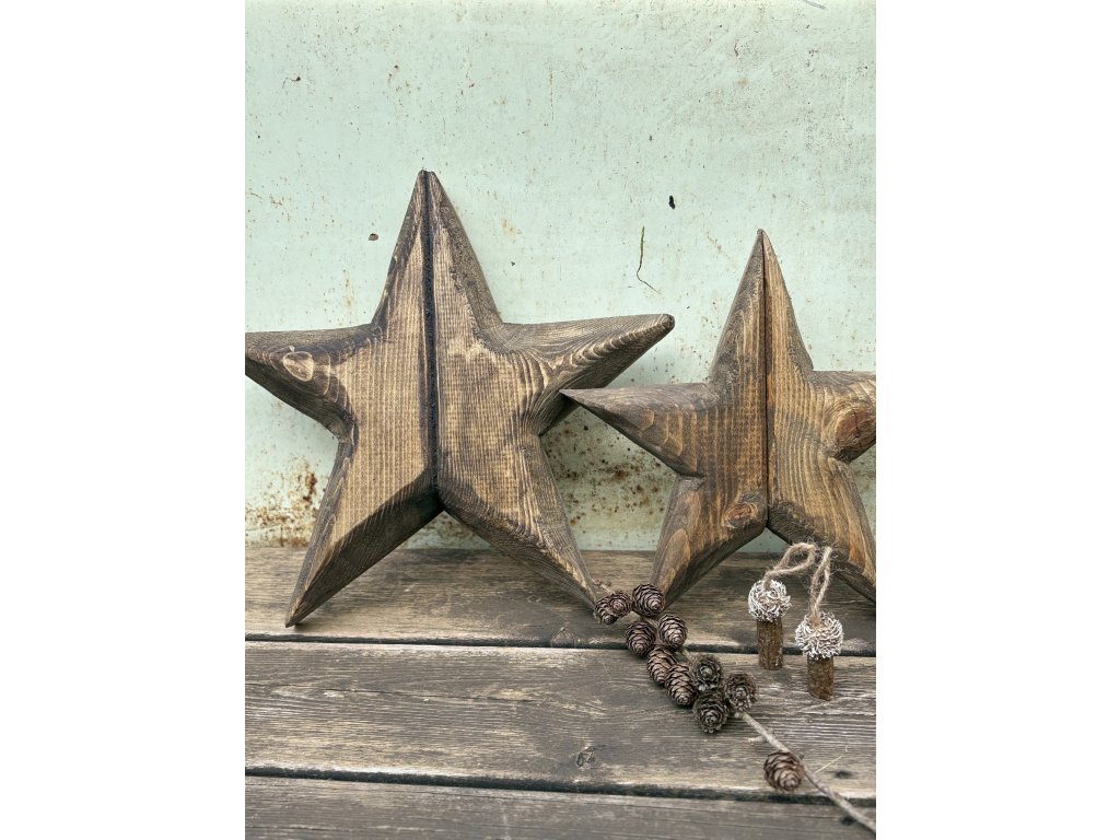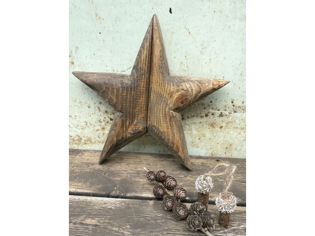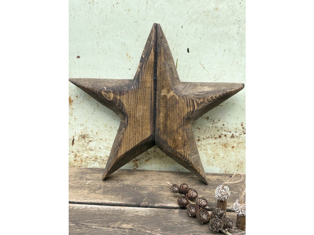 Drevená tvarovaná hviezda v odtieni orech s hrúbkou 4 cm.
