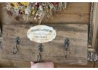 Drevený vešiak s etiketou a tromi háčikmi. Rozmery 17x40x2,5 cm.